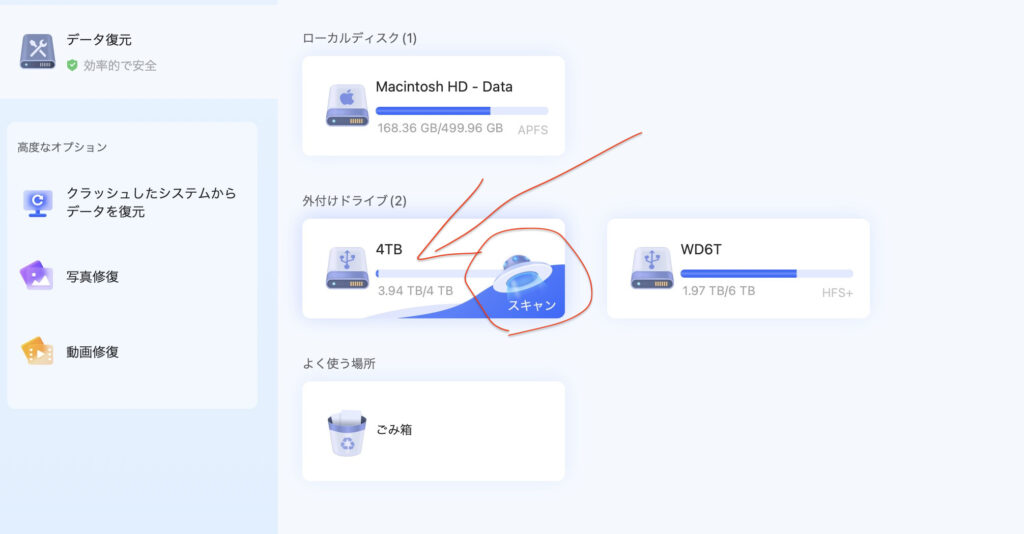 これが素晴らしいのは破損ファイルや捨ててしまったファイルも蘇らせられる可能性があると言うことです。