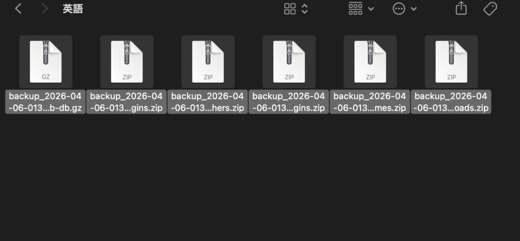バックアップ中に画面を閉じたり、別のページへ移動するとバックアップが途中で止まる場合があります。完了のメッセージが出るまで待ちましょう。